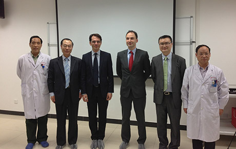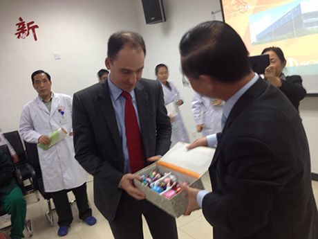 2013年10月(yuè)16-18日,美(měi)科創新和(hé)索菲薩公司聯手舉辦了一系列索菲薩腦(nǎo)脊液治療研討(tǎo)會(huì)。專門邀請了法國圖盧茲大(dà)學中心醫院神經外科Eric Schmidt教授和(hé)索菲薩公司CEO Philippe NEGRE先生和(hé)銷售總監Julien LARONZE先生來華參加這一系列的(de)活動。
