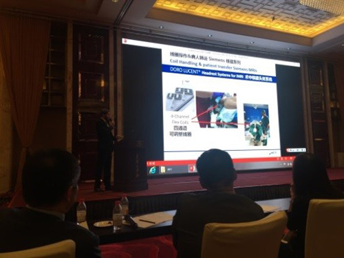 北京美紅科技有限公司也(yě)借此良機,在10月(yuè)8日中午舉辦了“北京美(měi)科創新頭部固定系統專題衛星會(huì)”,邀請了來自宣武醫院的(de)張鴻祺教授擔任主席,并特邀德國PMI公司總經理(lǐ)Matthias Schüle擔任講者。Matthias 不僅介紹了DORO系列産品,更詳細就目前中國發展迅速的(de)術(shù)中影像技術(shù)提供了多種解決方案。張鴻祺教授在總結時高(gāo)度認可(kě)了DORO品牌的(de)高(gāo)品質,以及使用(yòng)的(de)便捷性。也(yě)希望能(néng)盡快在中國有(yǒu)更多術(shù)中解決方案提供給中國神經外科醫師(shī),以造福更多中國的(de)病人(rén)。