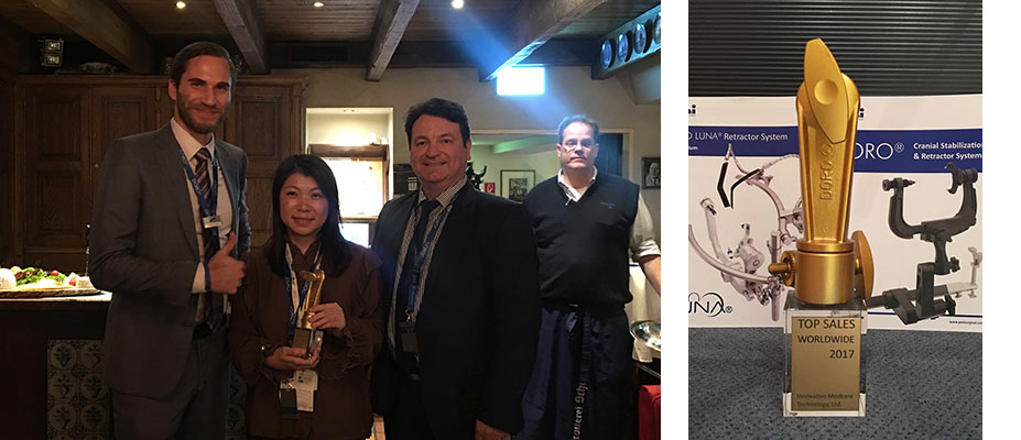 确實,美(měi)科能(néng)在20多個(gè)國家的(de)30多家全球代理(lǐ)商中脫穎而出,一舉奪得2條産品線“全球最佳銷售代理(lǐ)商金(jīn)獎“,這離(lí)不開(kāi)美(měi)科創新每位員工(gōng)的(de)辛勤付出與團隊合作。美(měi)科代理(lǐ)著(zhe)全球優秀的(de)産品,也(yě)有(yǒu)著(zhe)一群爲之拼搏的(de)傑出團隊,我相(xiàng)信隻要每一位員工(gōng)能(néng)一如(rú)既往的(de)延續“拼搏與合作”精神,再接再厲,與公司攜手共進,我們一定能(néng)把公司發展爲國内首屈一指的(de)神經外科産品供應商。