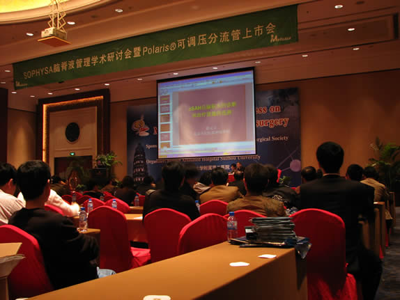 iMedcare also convened a Sophysa CSF management Satellite Meeting at 8 pm,13rd November, in the main assembly room. Polaris®, as the only MRI compatible adjustable valve in the world, has been 1st time introduced to Chinese neurosurgeons in this meeting. Firstly Managing Director of Sophysa Mr. P.NEGRE from France made an introduction of “the 1st manufacture of the adjustable valve in the world”. Then Professor Jiang jiyao, Professor Zhao yuanli and Professor Wang renzhi from various famous neurosurgery departments in China gave the lecture on Importance of ICP Monitoring, Hydrocephlas Treatment and Shunt Complication respectively. Finally iMedcare’s product manager Mr. Allen Ding introduced the effects of environmental magnetic field on adjustable valve safety. More than 200 delegates attended the meeting. This satellite meeting has been presided by Professor Lan qing and Professor Zhao jizong together, which has obtained excellent impact.